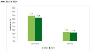 En Pobreza Monetaria la reducción pasó de 34,6% en 2023 a 31,8% en 2024, y en Pobreza Extrema paso de 12,6 en 2023 a 11,7% en 2024