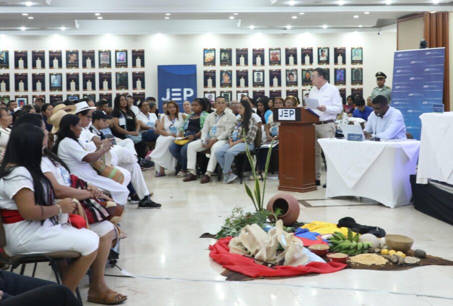 El presidente de la JEP, el magistrado Ramelli, destacó la importancia de realizar esta audiencia en la Costa Caribe, de la mano de los consejos comunitarios afrocolombianos y las autoridades indígenas Wiwa y Kankuama.